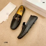 Men’s casual leather shoes cowhide loafers British fashion lazy one-step business soft-soled shoes.