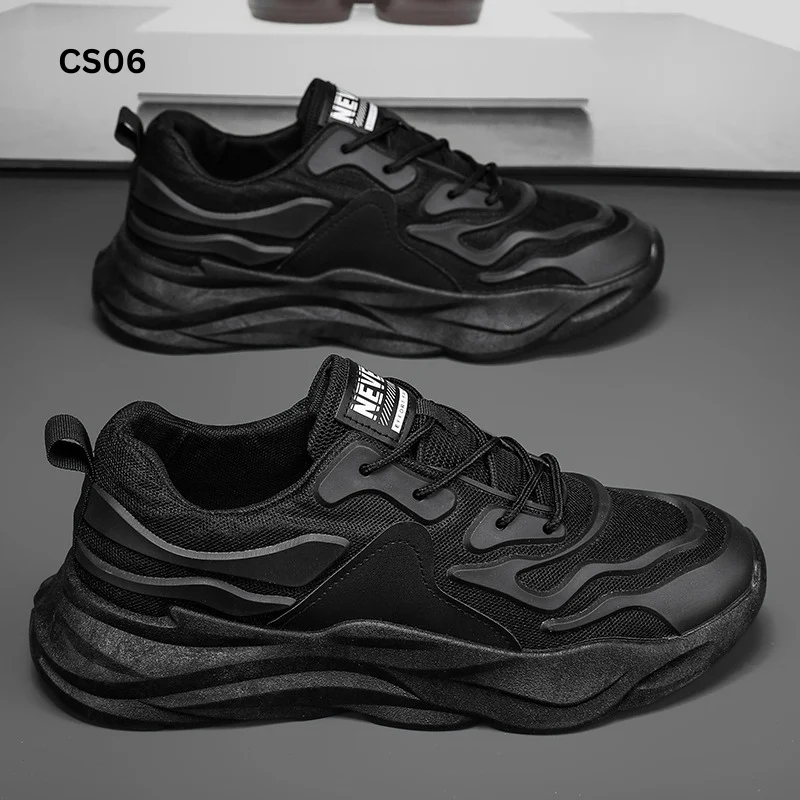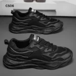 Sports shoes for men, pure black men’s shoes, summer new thick-soled non-slip running trend all-match casual dad shoes.