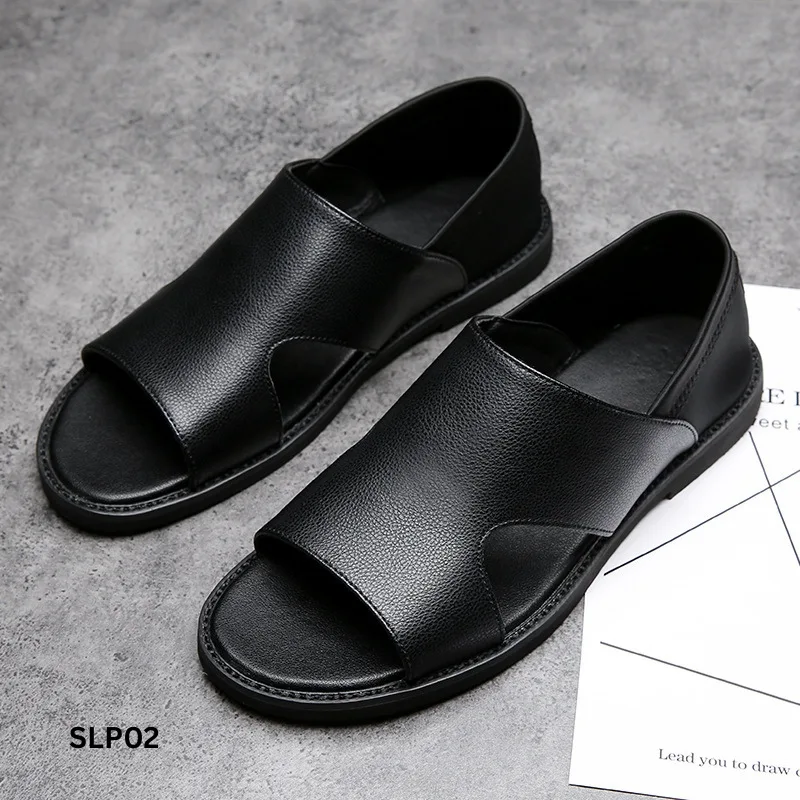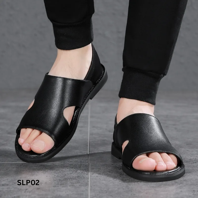 Purely handmade men’s leather slippers for summer outdoor wear, non-slip simple flip flops, soft leather and soft sole men’s slippers.